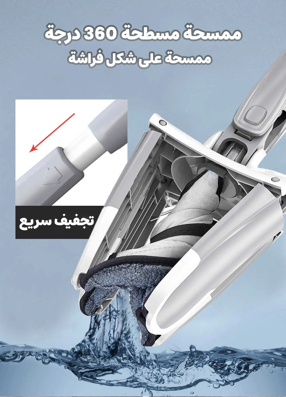 ممسحة أرضية من الألياف الدقيقة تدور 360 درجة